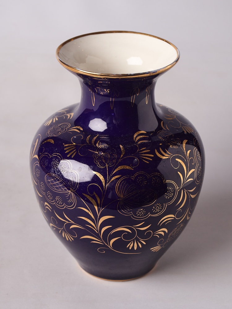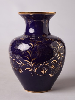 СССР. 1960-70-ее гг. Фарфор, кобальт, роспись золотой краской. Имеются следы бытования, несколько точечных заводских непрокрасов по эмали. Без сколов, трещин и реставраций.