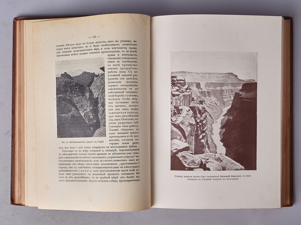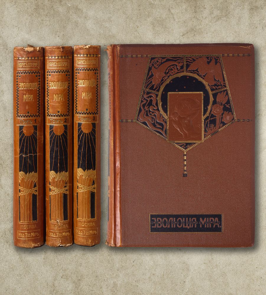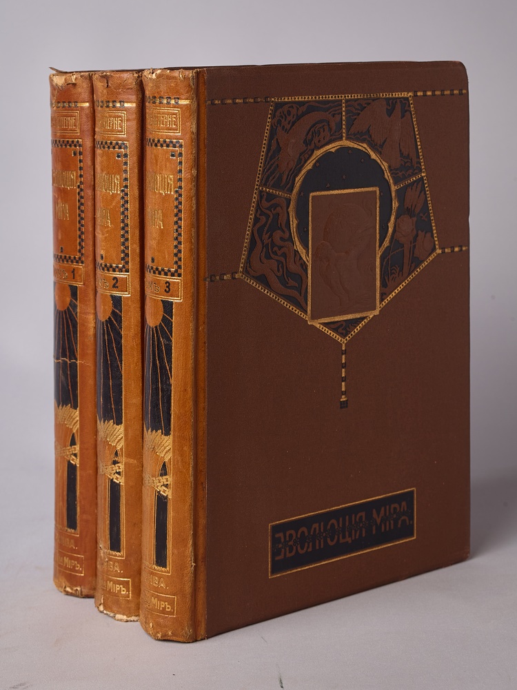 Перевод С.Г. Займовского с последнего немецкого издания, переработанного В. Бельше. С дополнительными статьями проф. Н.А. Умова и Н.А. Морозова. Второе издание. С черно-белыми иллюстрациями в тексте, цветными хромолитографированными на отдельных листах. Двойной титульный лист, один из них иллюстрированный в стиле Модерн художником М. Соломоновым. В издательских полукожаных художественно-оформленных переплетах. Корешки с тиснением названия и орнамента золотом (с небольшими повреждениями по краям). Коленкоровые крышки. По верхним крышкам объемное тиснение орнамента. Тройной цветной обрез.