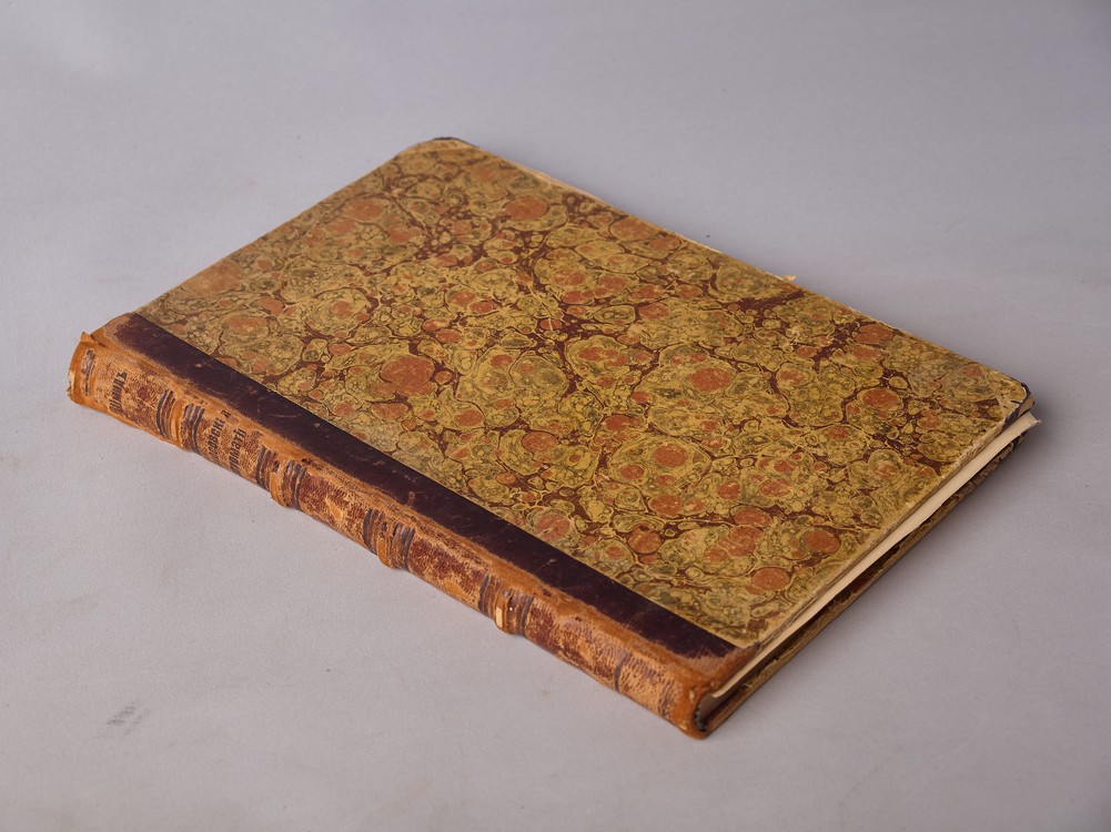 Перевод с немецкого Ю.А. Говсеева. На страницах временные пятна, встречаются подчеркивания красным карандашом в тексте. Блок расшатан, выпадающие страницы, но полный комплект страниц. Во владельческом полукожаном переплете времени издания. Переплет с потертостями.