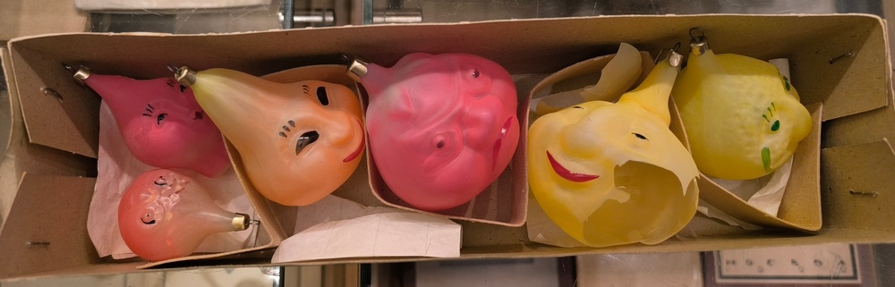 СССР. Московский Завод Елочных Украшений. 1970-ее гг. Сохранена заводская коробка (заклеена скотчем, имеет надорванность). Фигурка Чиполлино - разбитая. Остальные 5 фигурок - целые, в хорошем состоянии.