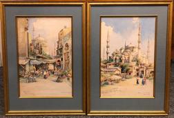 1910-20-ее годы. Бумага, акварель. Подпись художника "Pavlikevitch" в нижних левых углах. Назания работ на французском - в нижних правых. В современном багете, паспарту.