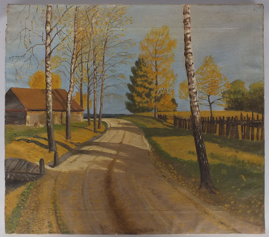 Россия. Холст, масло. В крайнем левом углу неразборчиво просматривается инициалы художника и год 29. На старом подрамнике.