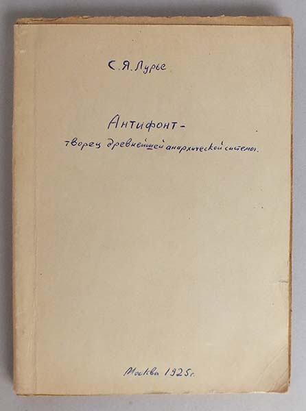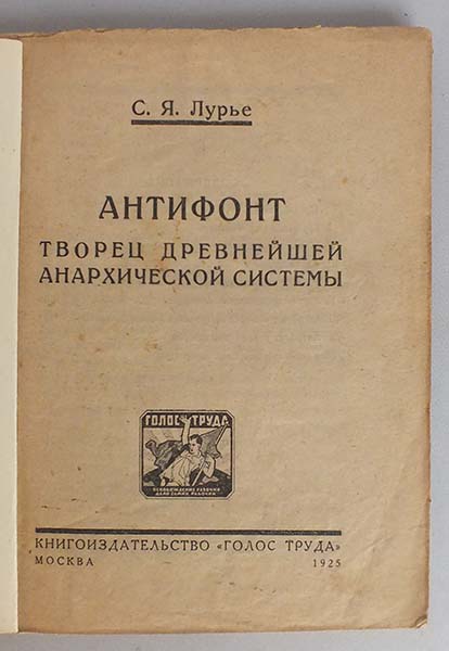 Работа крупнейшего отечественного специалиста в области истории и культуры Древней Греции С.Я. Лурье посвящена жизни и деятельности одной из наиболее интересных и противоречивых фигур Античности — древнегреческого философа-софиста Антифонта. Автор не только дает яркое описание жизненного пути своего героя, но и предпринимает небезуспешную попытку реконструкции философских произведений Антифонта, в которых были предвосхищены многие идеи, получившие определенное отражение в работах классиков анархизма — М.А. Бакунина и П.А. Кропоткина.