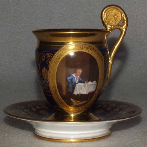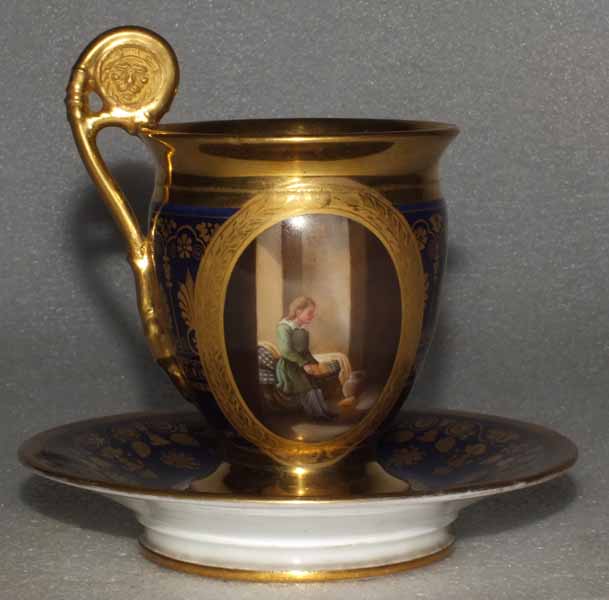 Россия. Фабрика Гарднера - ? XIX век. Фарфор, крытье синей краской, деколь, живопись. Профессиональная реставрация, и скол по ручке.