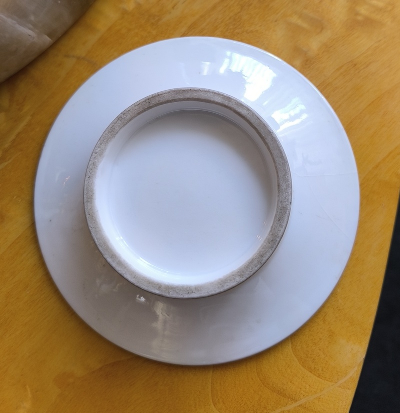 Высота - 11 см. Диаметр блюдца - 12,8 см.