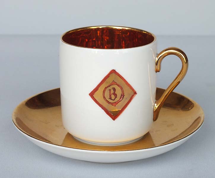 Финляндия. Arabia Finland. Сер. ХХ века. Фарфор, богатое крытье золотом. На чашечке подрисовка буквы "В". Без сколов, трещин и реставраций.