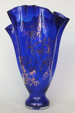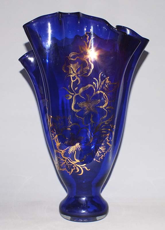 Европа. 1970-ее годы. Синее стекло, деколь, золочение. Небольшие следы бытования. Без сколов, трещин и реставраций.