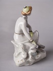 Украина. 1990-ее гг. Повтор фигуры, выпущенной в Барановке в 1950-ее гг. Фарфор, роспись красками. Сбит край конька, но это заводской брак, там же прокрашен ккраской и залакирован. Остальное - без сколов, трещин и реставраций.