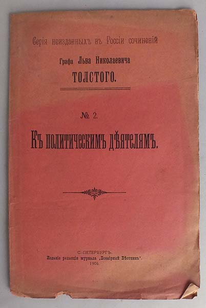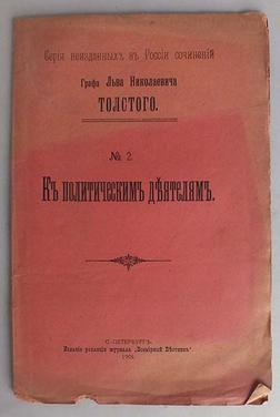 Прижизненное издание. Серия неизданных в России сочинений графа Л.Н.Толстого. Отдельный оттиск январской книжки журнала "Всемирный Вестник". В бумажной издательской печатной обложке. Небольшие повреждения по краям.