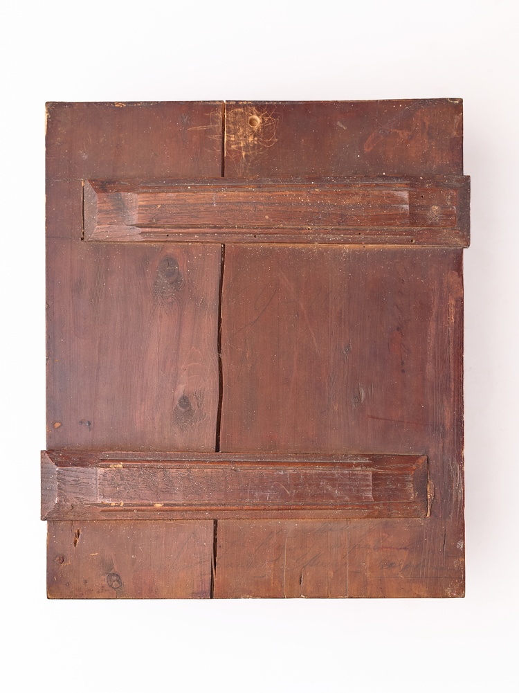 Россия. XIX век. Доска, живопись. Доска в плохом состоянии, многочисленные потери красочного слоя, потемневшая краска, трещина.