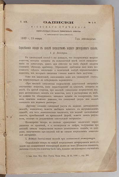 Записки Киевского отделения Императорского Русского технического общества по свеклосахарной промышленности. Том ХIX. 1889 г