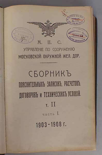 М.П.С. Управление по сооружению Москвов. Окружной Жел. Дор. Сборник пояснительных записок, расчетов, договоров и технических условий. Т. II. Часть I. 1903-1908 гг
