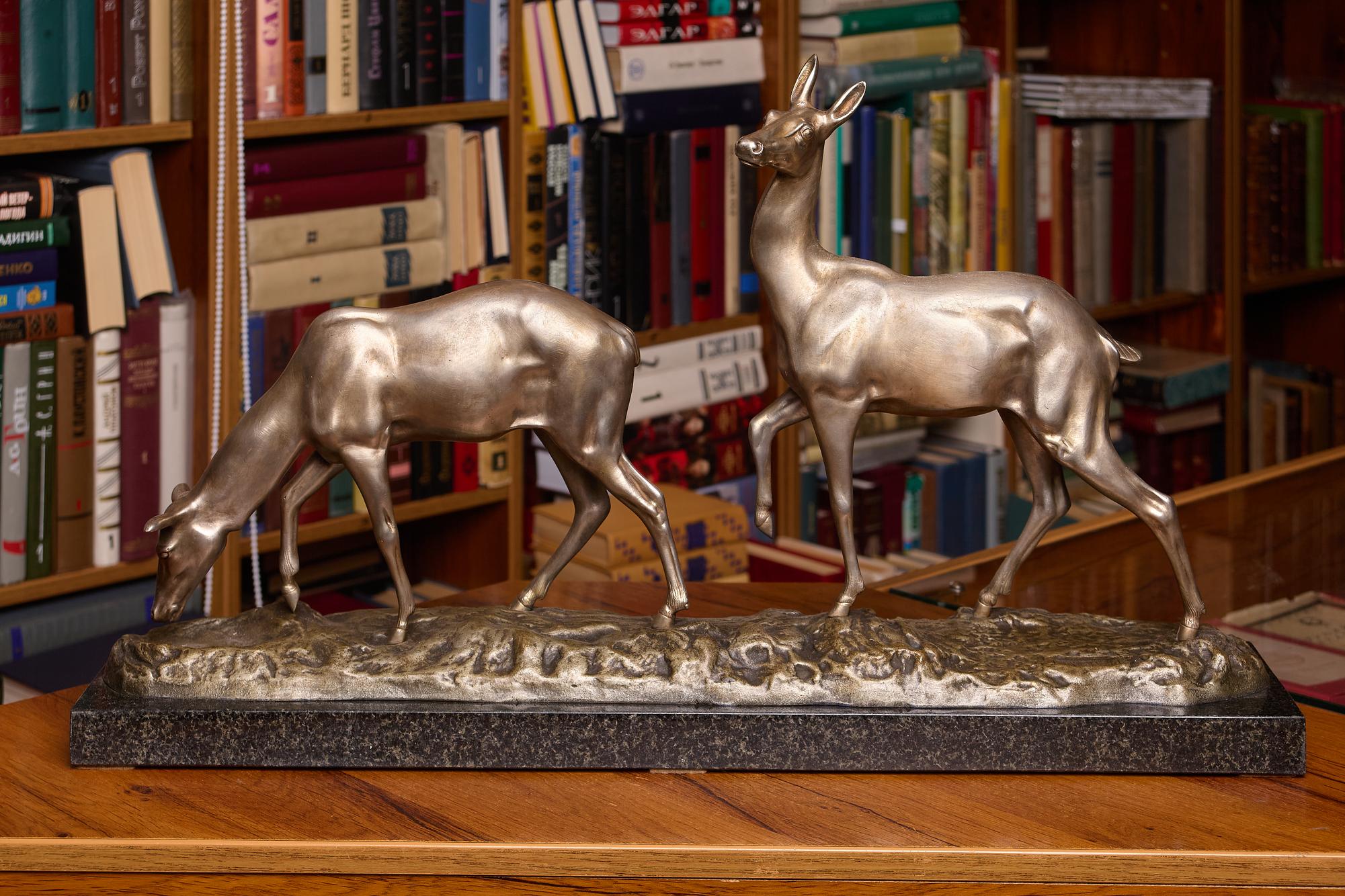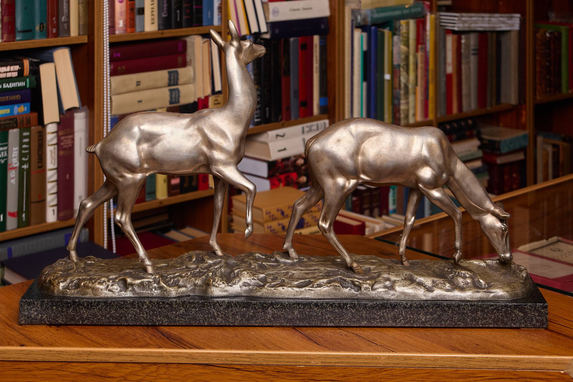 Франция. Нач. ХХ века. Бронза, художественное литье, серебрение. Подставка камень. На основании подпись художника "I. Rocherd".