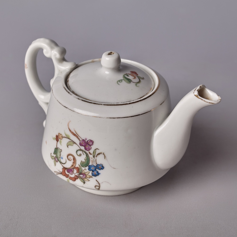 СССР. Вербилки. Дмитровский Фарфоровый Завод. 1939-40 г.. Фарфор, роспись красками, золочение. Микросколы на носике. Потертости позолоты. Внутри - следы от заварки.