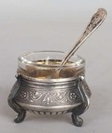 С 10.00 до 19.00 Сб. - с 10.00 до 18.00 Вск. - выходнойСССР. Мельхиор, гравировка, стекло. Клеймо "3 ЮММЕТ". В комплект входит маленькая ложечка. На металле следы бытования. Вставка из стекла - целая, без сколов. В налии второй экземпляр. Цена каждой солонки - 800 руб.