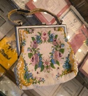 Европа - ? 1930-40-ее годы. Вышивка бисером, металл. Незнаяительные потери бисера у застежки. Кожаный слой на тканной ручке - рассохся.